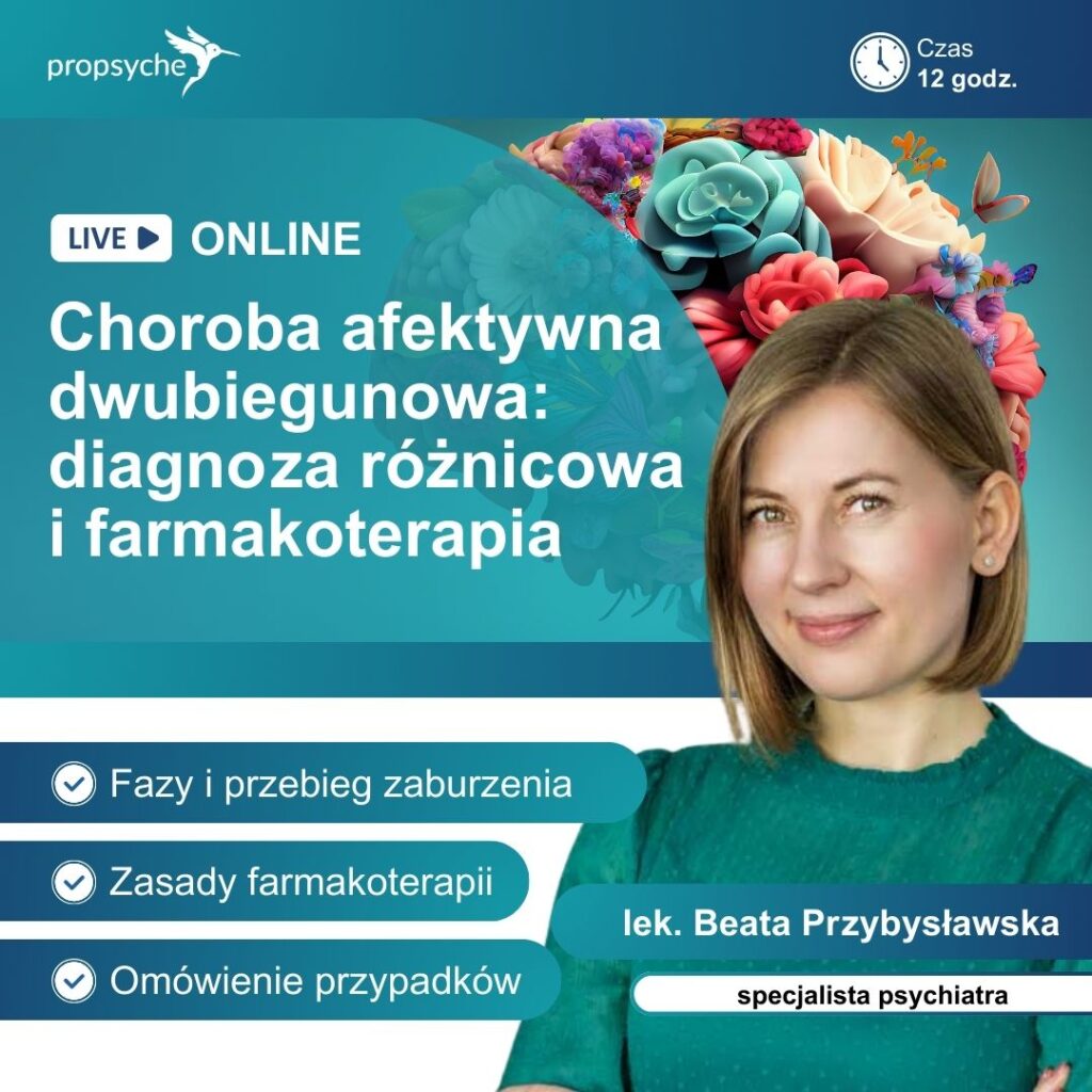 Szkolenie online, które obejmuje szeroki zakres tematów, od historii i klasyfikacji choroby afektywnej dwubiegunowej, przez diagnostykę różnicową, aż po zasady farmakoterapii i omówienie przypadków klinicznych. Jest skierowane zarówno do początkujących w zawodzie, jak i do doświadczonych specjalistów, oferując cenne informacje i praktyczne umiejętności w pracy z pacjentami.